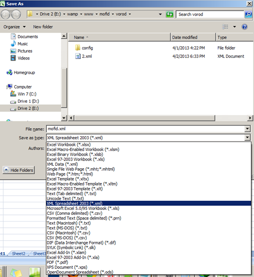 برای این کار کافیه شما موقع ذخیره کردن فایل اکسل تون تایپ اون رو XML Spreadsheet 2003 بزارید .